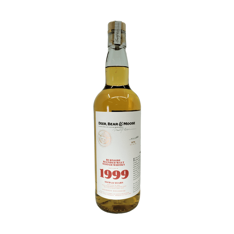 Deer, Bear & Moose 23 Year Old Burnside 1999 Blended Malt Scotch Whisky hails from Scotland, known for its exceptional whisky production. This 23-year-old blend combines aged malts for a complex and sophisticated experience. The palate reveals rich layers of honey, vanilla, and dried fruits, accompanied by hints of oak and subtle spices, offering a well-balanced and smooth finish.